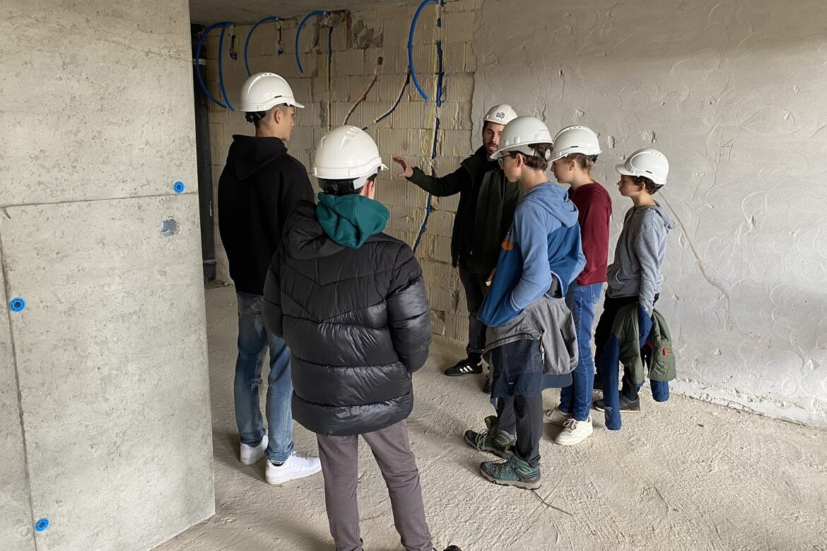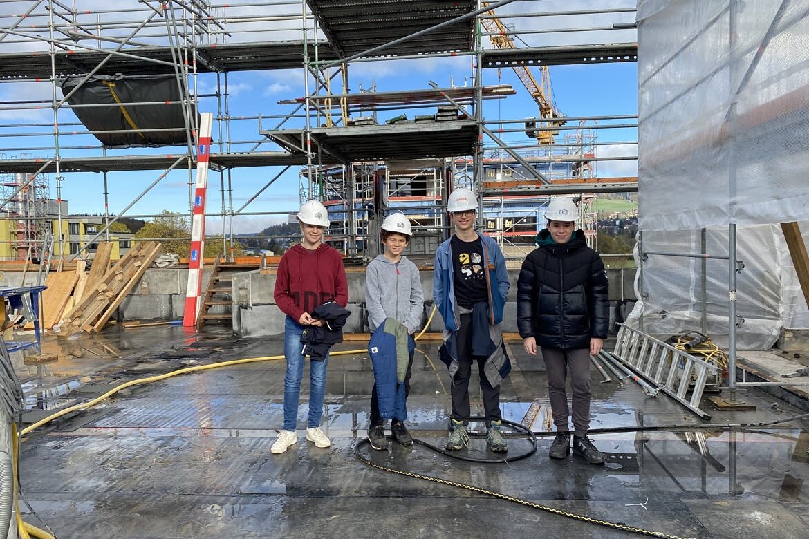 Heute war wieder Nationaler Zukunftstag und Meret, Ilan, Janosch und Yann waren zu Besuch bei W2H. Am Morgen ging es nach kurzem gegenseitigem Kennenlernen nach Ostermundigen auf unsere Baustelle der Sanierung und Aufstockung Lindendorf II. Dort ist aktuell die nächste Bauetappe gestartet und der Baumeister ist an Abbrucharbeiten im Bestand. Direkt daneben sieht man aber bereits das Resultat der vorherigen Etappe…
