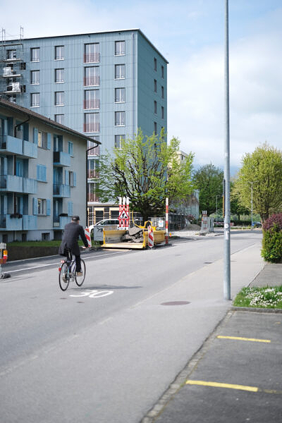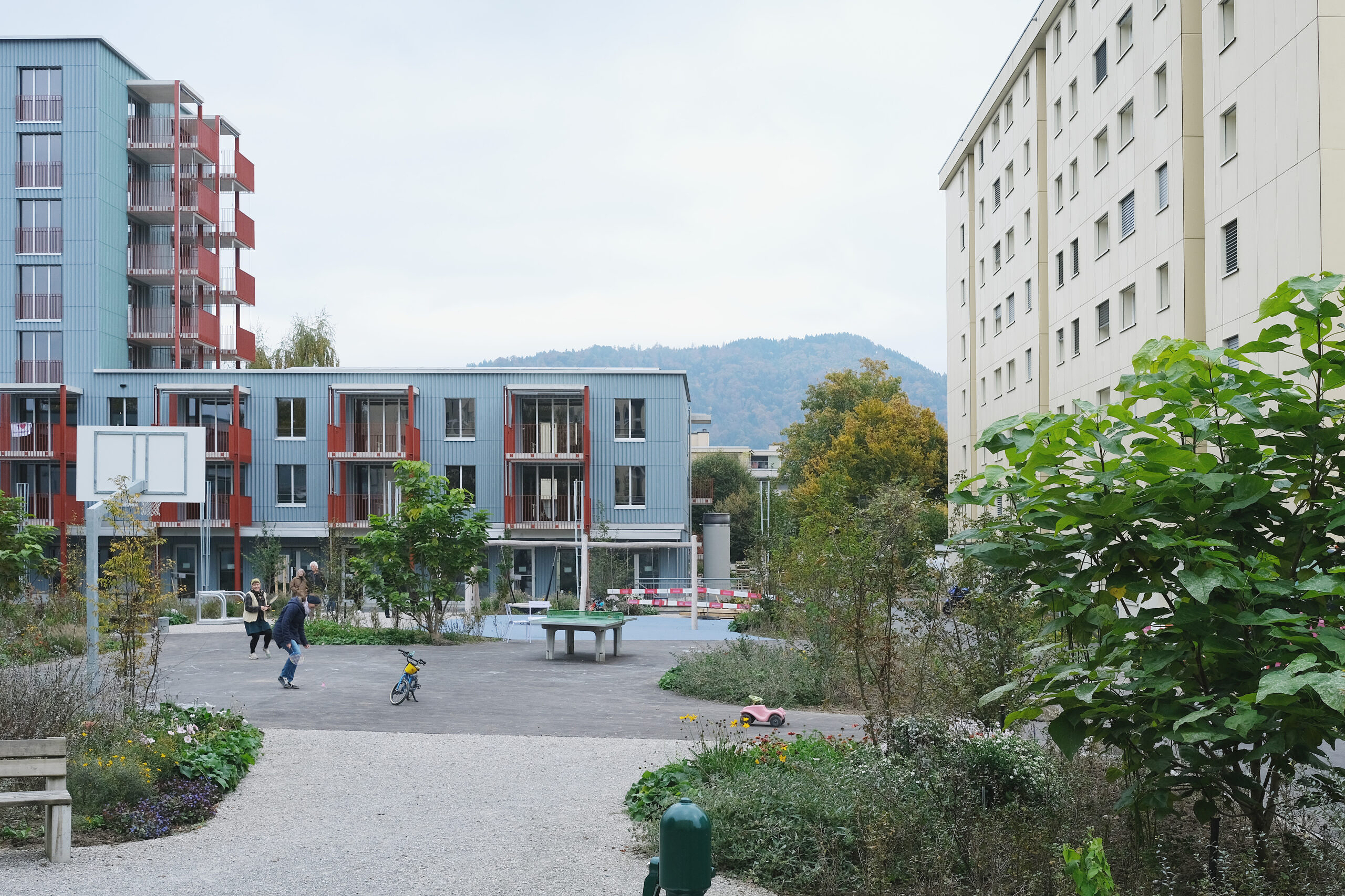 Für die Erweiterung wird einzig ein eingeschossiger, sanierungsbedürftiger Gewerbebau abgebrochen. Die Erweiterung der Siedlung entspricht somit einer konsequenten inneren Verdichtung, ohne dafür bestehenden, günstigen Wohnraum zu vernichten. Auch müssen auf Grund der bestehenden Einstellhalle, welche unterhalb des neuen Hofs liegt, keine zusätzlichen und kostenintensiven Einstellhallenplätze erstellt werden. Baurechtlich ermöglicht eine neue Überbauungsordnung die Umsetzung des Wettbewerbserfolgs.