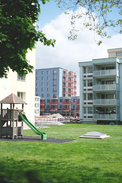 Die Siedlung Nünenen/Schönau wurde 1968-1972 als modernes Wohnquartier mit drei-, vier- und achtgeschossigen Bauten erstellt. Der Teil der Bau- und Wohngenossenschaft BWG Nünenen umfasst heute 142 Wohnungen mit einem Schwergewicht auf 3.5-Zi-Wohnungen. Der Neubau ergänzt das Wohnungsangebot um 27 Wohnungen mit der Absicht, einerseits günstigen Wohnraum für Familien zu ermöglichen. Anderseits können ältere Bewohner*innen der Siedlung von einer bestehenden, grösseren Wohnung innerhalb der Siedlung umziehen und von der der Hindernisfreiheit der Neubauwohnungen profitieren.