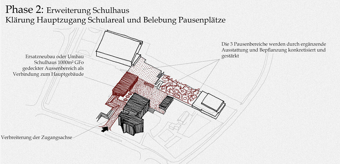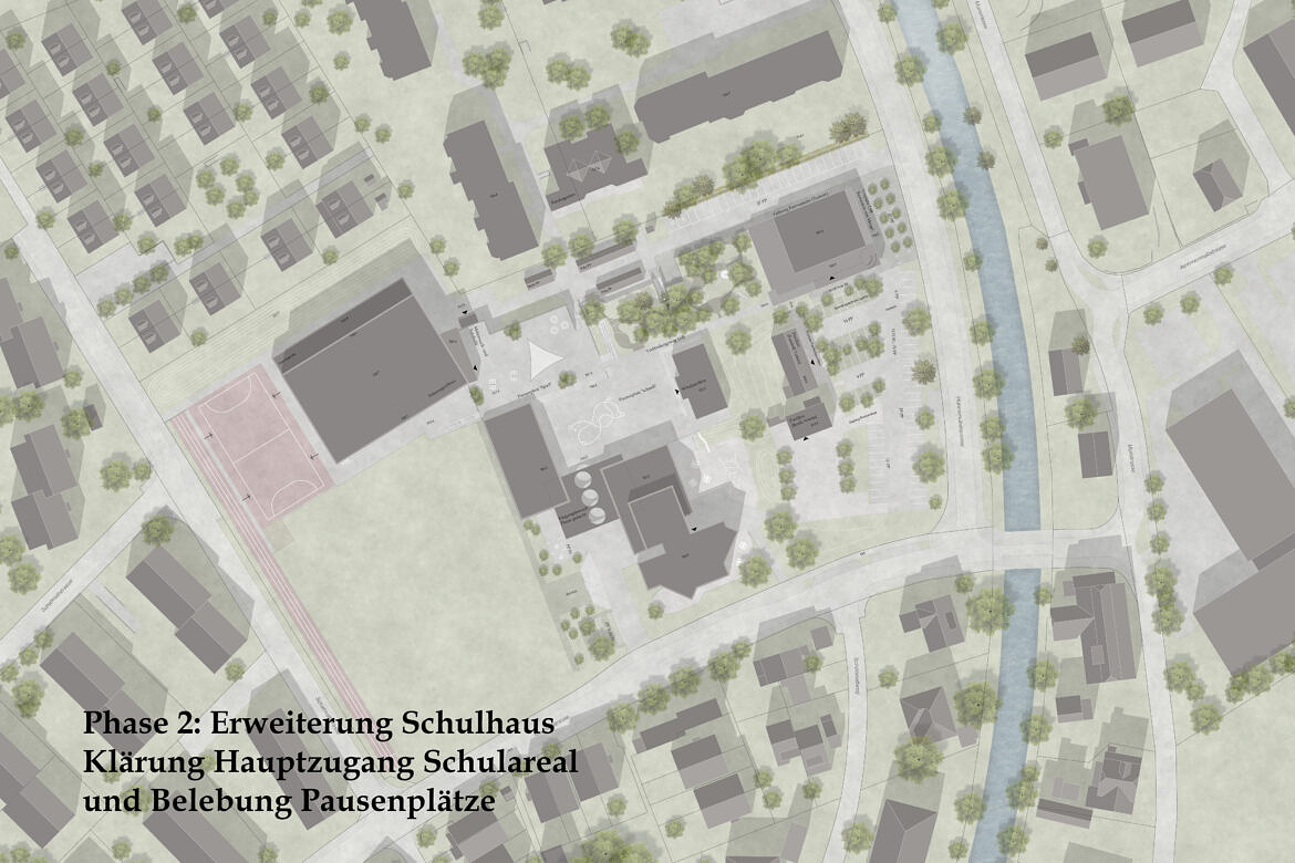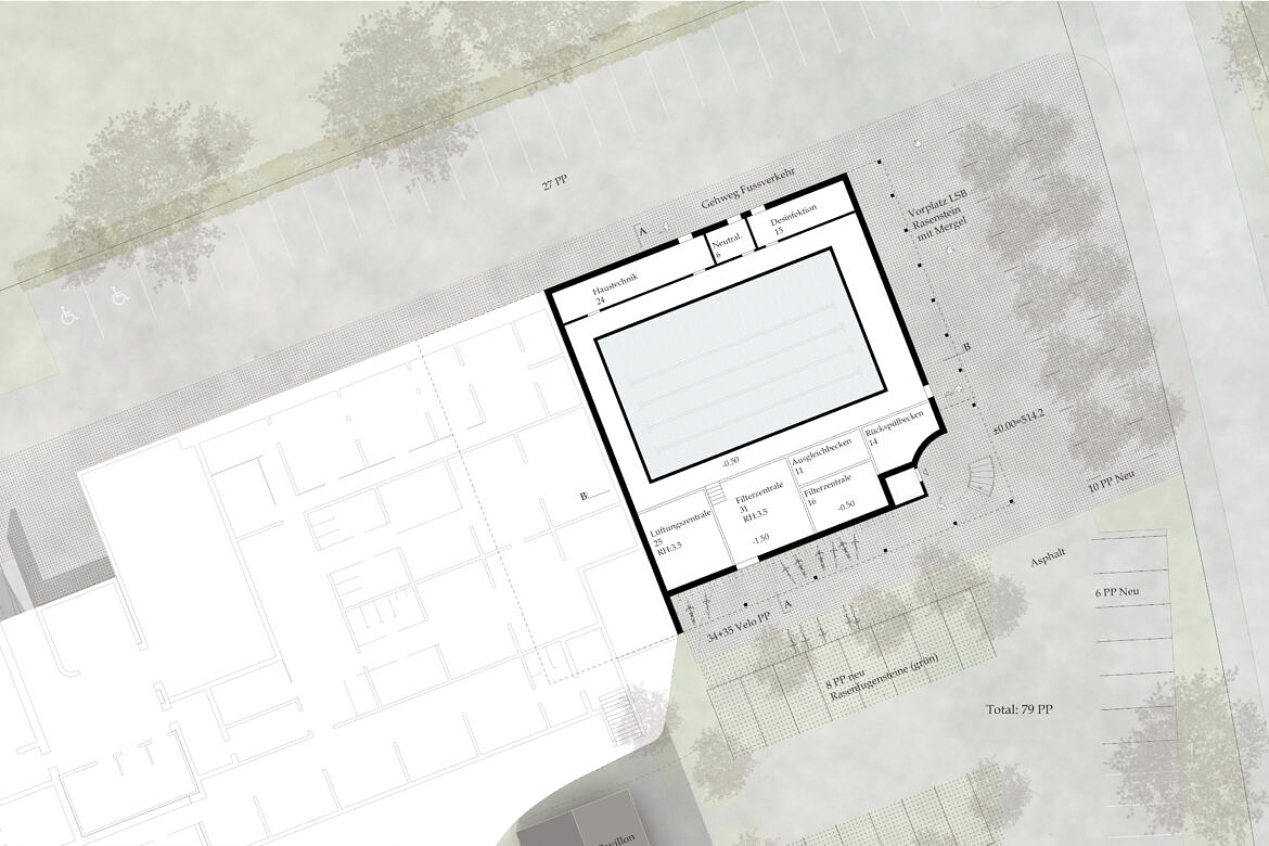 Die Schulanlage Neumatt in Belp ist mehrfach erweitert worden, neu soll ein Lehrschwimmbecken gebaut werden. Die Setzung soll eine spätere sinnvolle Erweiterung der Schulnutzung ermöglichen und das Potential für zukünftige Nutzungen aufzeigen. Zusammen mit Hofmann Landschaftsarchitekten schlagen wir einen Ansatz vor, der bereits in der ersten Etappe die gesamte Anlage ordnet und aufwertet.