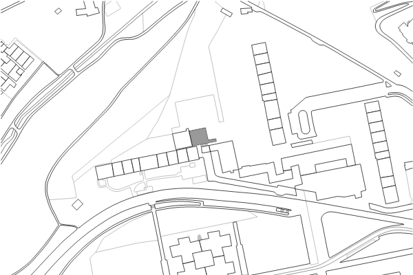 Die drei gleichartigen, orthogonal gestellten Wohnhochhäuser bilden die Hauptbaukörper der zwischen 1965 und 1968 durch Eduard Helfer sowie Hans und Gret Reinhard errichteten Grossüberbauung Gäbelbach, deren Planung bis ins Jahr 1959 zurückreicht. Die Marseiller ‹Unité d’habitation› von Le Corbusier stand konzeptionell Pate. Zwischen den Scheibenbauten befindet sich ein grosser Geschäfts- und Freizeit-Komplex, der nach und nach zu einem veritablen Zentrum der Gross-Siedlung ausgebaut wurde. Er umfasst nebst Schule und Kindergarten auch Gemeinschafts-, und Werkräume, ein Restaurant, Einkaufsmöglichkeiten aller Art sowie eine Schwimm- und Turnhalle. An der Schulanlage wurden in der Vergangenheit die nötigen Unterhalts- und Reparaturarbeiten ausgeführt, die originale Infrastruktur ist grösstenteils noch erhalten. Insbesondere in der Turnhalle drängte sich eine grössere Sanierung auf, die gültigen Sicherheits- und Komfortanforderungen waren nicht mehr gewährleistet. Der Umbau zeichnet sich durch eine massvolle Eingriffstiefe aus. Die beiden Garderoben erhalten je einen unabhängigen Duschraum und neu steht auch ein hindernisfreies WC zur Verfügung.