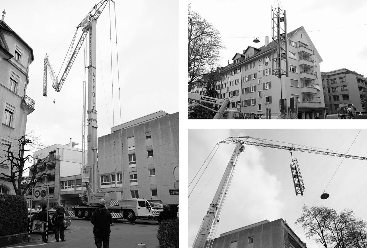 Im Rahmen unserer Sanierung des Domicils Ahornweg in der Länggasse Bern wurde gestern die Stahlkonstruktion des Liftschachts eingebracht. Ein Mobilbaukran mit 40m Ausladung und 50m Höhe führte den insgesamt 17m hohen Liftschacht in zwei Teilen über das Dach in das vorgängig präzise angepasste Treppenauge des Treppen-hauses. Millimetergenau wurden die beiden Elemente über mehrere Geschosse eingeführt und versetzt. Der ganze Einbauprozess bot den zahlreichen Passanten ein nicht alltägliches Spektakel und ging trotz schwieriger Windverhältnisse problemlos über die Bühne!